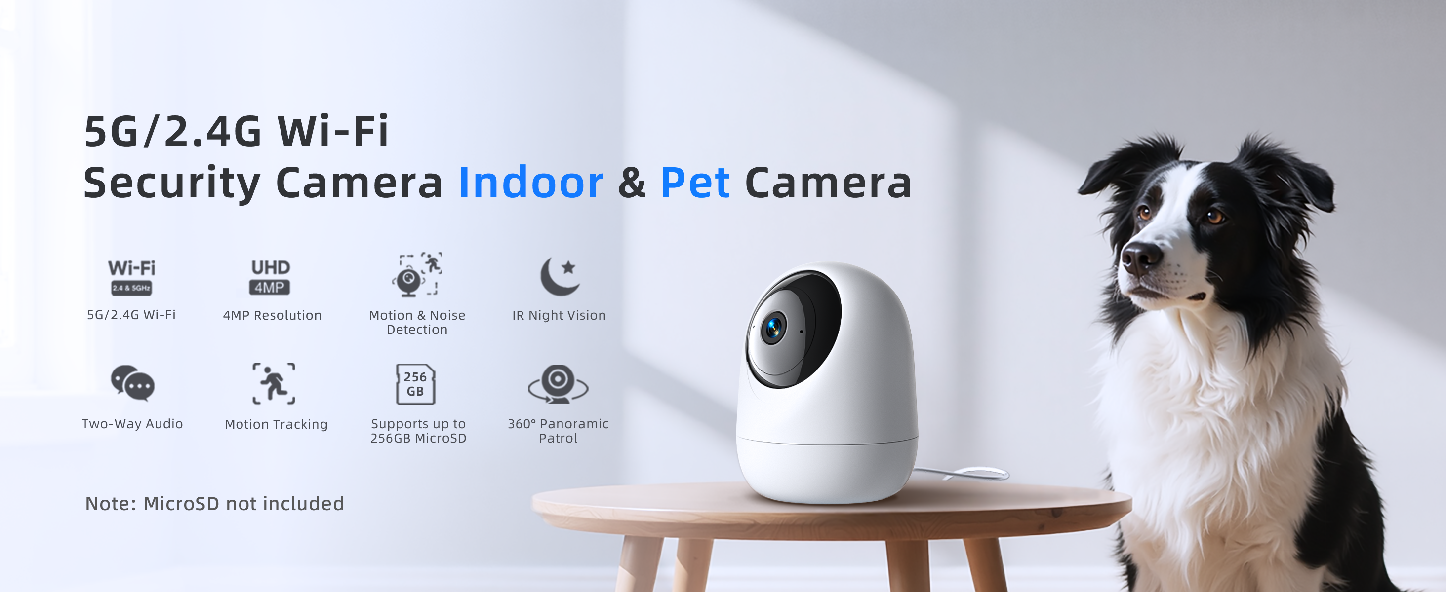 Andyssey Indoor Camera, 4MP 360° WiFi (5GHz) Security Cam with Motion Sensor, App Control & Speaker